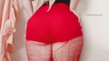 Butt and thighs dance tease in very short red shorts and fishnets!